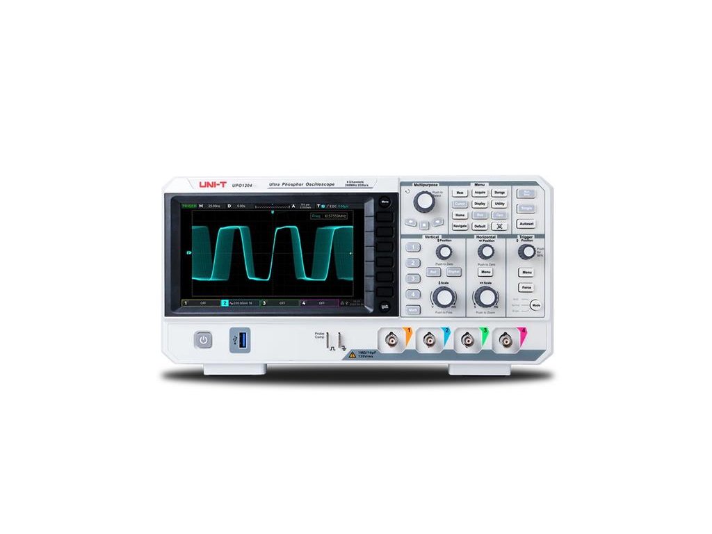 Digitální fosforový osciloskop UPO1204 řady UPO1000 využívá inovativní UNI-T Ultra Phosphor 2.0 s novým vylepšeným vzhledem a funkcí hlubokého ukládání, vysokou rychlostí snímání průběhu, nahráváním a přehráváním průběhu v reálném čase a zobrazením dosahuje až 2GSa/s. Řada podporuje nezávisly modul DVM, bohaté funkce spouštění a dekódování sběrnice a podporuje hardwarové dekódování v reálném čase s plnou pamětí. Je široce používán v mnoha oblastech, včetně návrhu vestavěných systémů, instrumentace, průmyslové elektroniky, spotřební elektroniky, automobilové elektroniky, údržby v terénu, výzkumu, vývoji, vzdělávání a mnoha dalších oblastech..