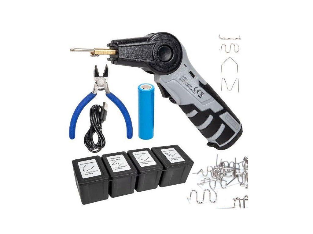 Svářecí pistole na plast ZD-507L. Nástroj určený k přesným opravám plastů vybavený otočnou hlavou. Najájený je Li-Ion článkem 18650. Součástí sady je 200ks různých svařovacích sponek.