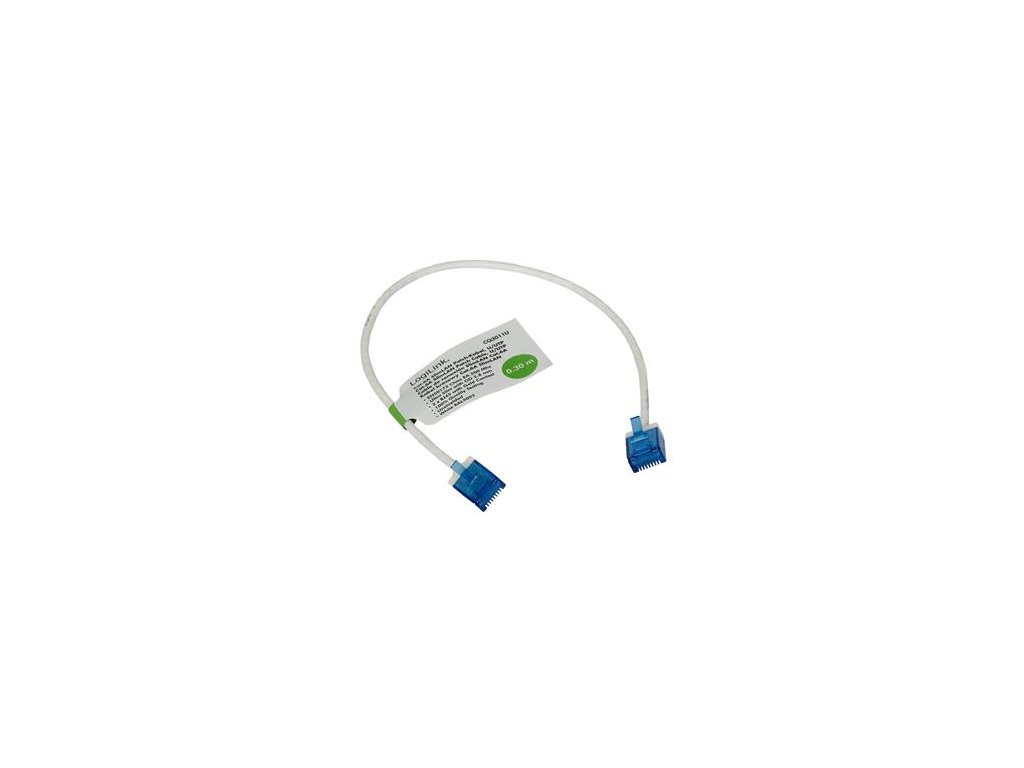 Patchcord UTP kategorie 6A typu slim o délce 30 cm v bílé barvě, určený pro použití v počítačových sítích Ethernet.