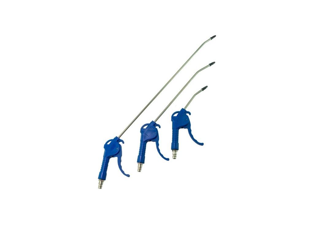 Sada ofukovací pistole na stlačený vzduch obsahuje tři pistole různých velikostí (100 mm, 300 mm a 500 mm), které poskytují všestrannost pro různé druhy čištění a údržby. Každá pistole je vybavena dlouhou tryskou pro dosažení těžko dostupných míst a ergonomická rukojeť zajišťuje pohodlné používání. Jsou vyrobeny z odolných materiálů, díky čemuž jsou ideální pro domácí použití.