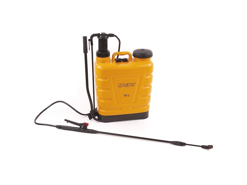 POPIS Zádový tlakový postřikovač. Délka hadice: 1,1 m Teleskopický nástavec: 60 - 118 cm Pracovní tlak: 0,4 MPa Objem: 16 l
