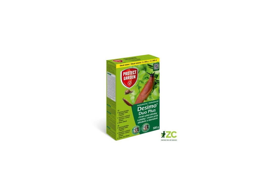 DESIMO DUO PLUS z řady PROTECT GARDEN je vysoce účinný kontaktní a požerový moluskocid proti všem druhům slimáků a plzáků v zahradě. Přípravek ve formě granulované nástrahy k přímému použití k ochraně jahodníku, zeleniny a okrasných rostlin s rychlým účinkem. Pro slimáky je vysoce atraktivní, přijímají jej jako potravu a následně hynou. Je odolný dešti, což je vzhledem k aktivitě slimáků důležitý předpoklad jistoty zásahu.