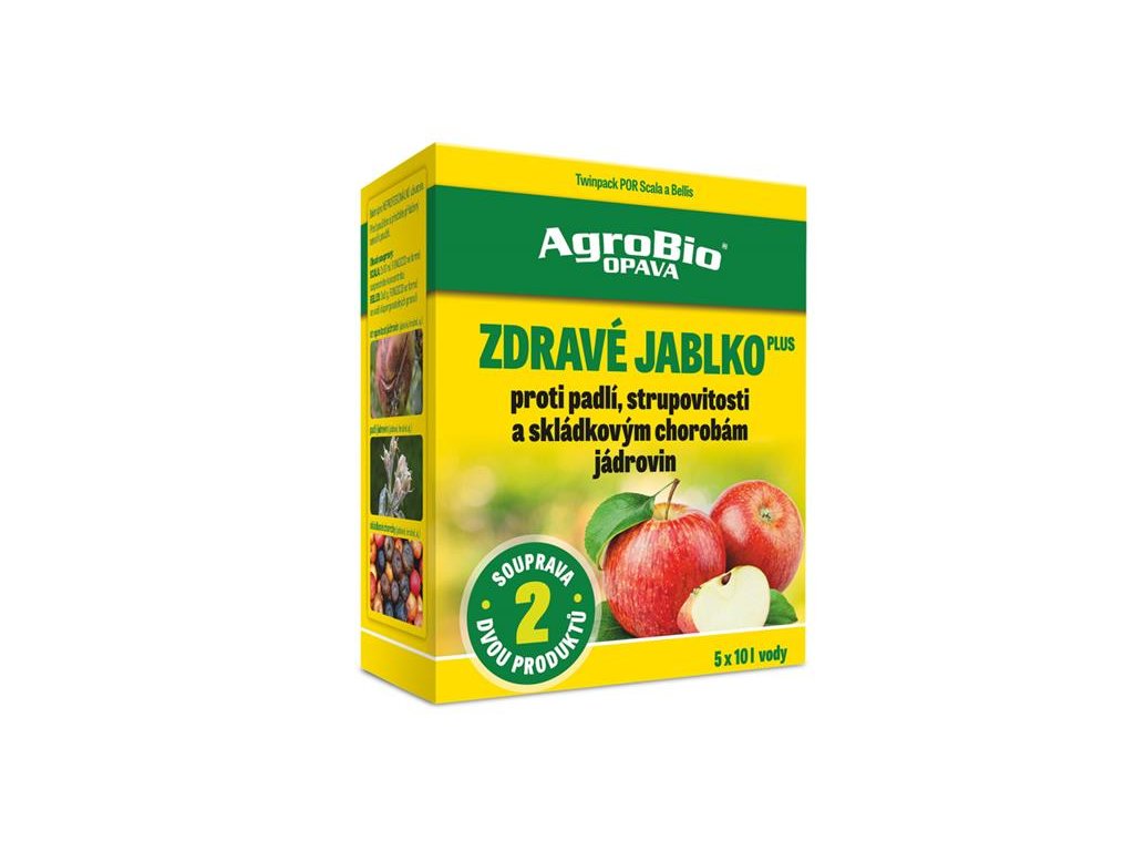 Souprava dvou fungicidů na ošetření jabloní proti strupovitosti, padlí a proti skládkovým chorobám. Ucelený systém 5-ti ošetření. Souprava dvou fungicidů (Bellis a Scala) na ošetření jabloní proti strupovitosti, padlí a proti skládkovým chorobám jádrovin.