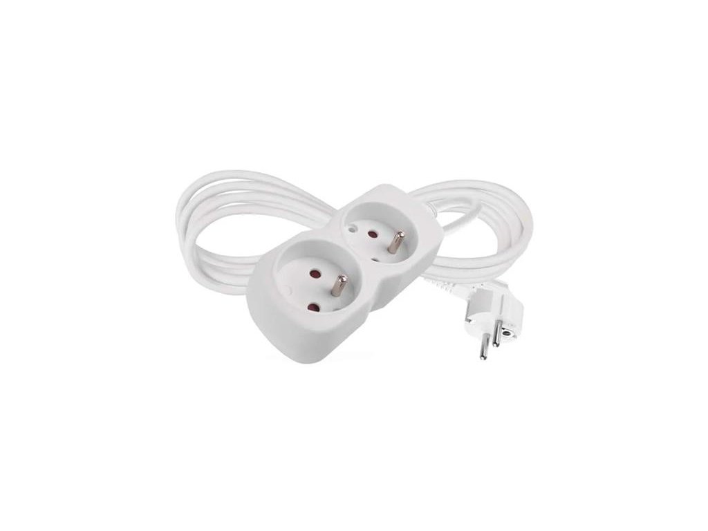 Bílý prodlužovací přívod, 2 zásuvky s dětskými clonkami a délkou 2 m. Průřezem vodiče 1 mm2. Vhodný pro maximální zátěž 16 A max.