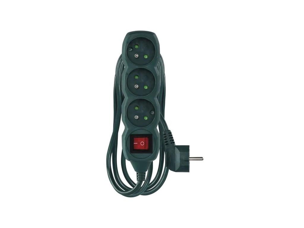 Prodlužovací kabel 3 m / 3 zásuvky / s vypínačem / zelený / PVC / 1,5 mm2