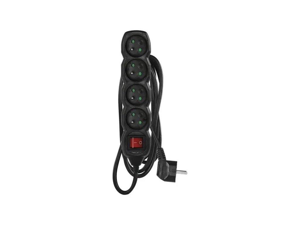 Prodlužovací kabel 3 m / 4 zásuvky / s vypínačem / černý / PVC / 1,5 mm2.