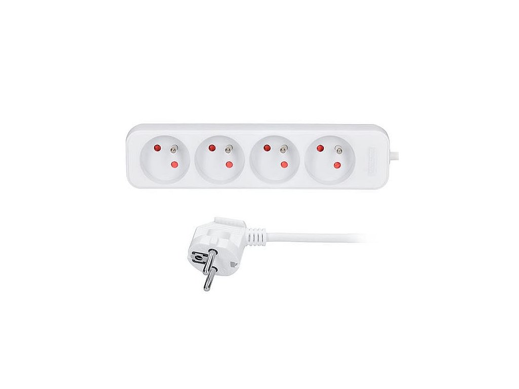 POPISProdlužovací kabel o délce 1,5 metru se 4 zásuvkami pro použití ve vnitřních prostorech.SPECIFIKACEPočet zásuvek: 4Průřez vodičů: 3x 1 mm2Typ kabelu: H05VV-F3Lomená vidliceBarva: bíláDélka: 1,5 m230 V / 10 AStupeň krytí: IP20Napětí: 230 V / 10 A