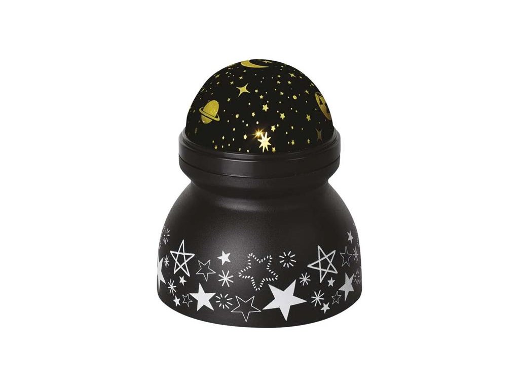 Existuje nějaká dekorace, kterou budou vaše děti doslova zbožňovat? Určitě to bude hravý projektor určený pro použití v interiéru, který na stěnu, strop nebo nábytek promítá pohybující se motivy hvězdiček a planet v teplé bílé barvě. Projektor je napájen AAA bateriemi nebo pomocí USB adaptéru a jeho použití nejen v dětském pokoji je tak zcela bezpečné. Dopřejte svým dětem bezstarostné usínání při pohledu na uklidňující hvězdnou oblohu.