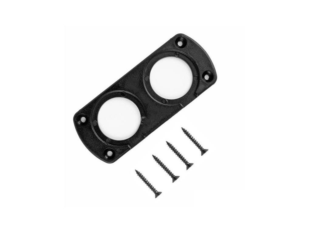 Plochý kryt se zaoblenými stranami pro montáž kulatého voltmetru, USB nabíječky nebo zásuvky zapalovače cigaret. Rám umožňuje montáž dvou komponentů současně.