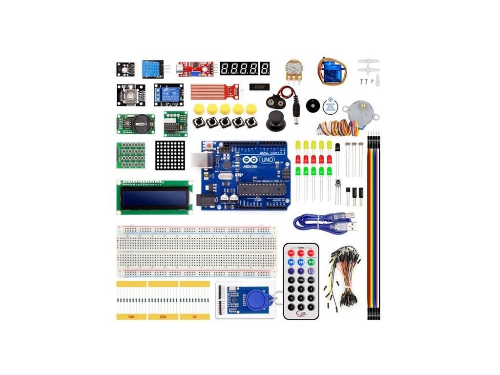 Základní RFID výukový kit UNO R3 Kuongshun AE069 s klonem Arduino UNO R3. „RFID Starter Kit pro Arduino“ je dodáván v praktickém pouzdře a obsahuje více než 30 nejmodernějších komponent, zařízenía modulů.