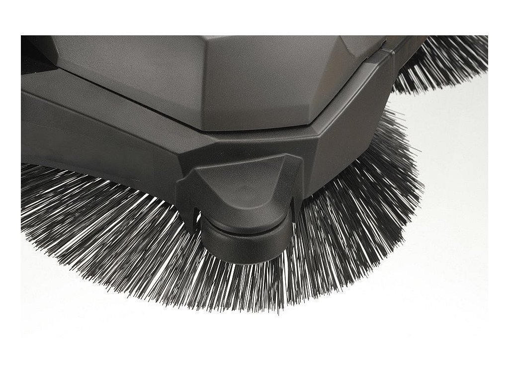Tento tichý a spolehlivý zametač má dva protiběžné čisticí kartáče o průměru 300 mm se třemi různými nastaveními výšky a kartáč na spodní straně, který sebere i nejjemnější prach.