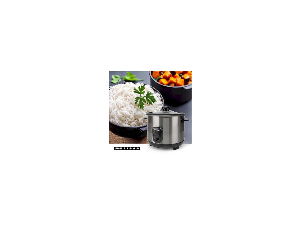Vařič rýže Melissa je vyroben tak, aby vydržel, má odolný kryt z nerezové oceli a průhledné skleněné víko, takže můžete sledovat svůj pokrm, aniž byste museli víko zvedat a uvolňovat teplo. Prioritou je také bezpečnost, a to díky vestavěné ochraně proti vyvaření, která automaticky vypne vařič, pokud není detekována žádná voda.