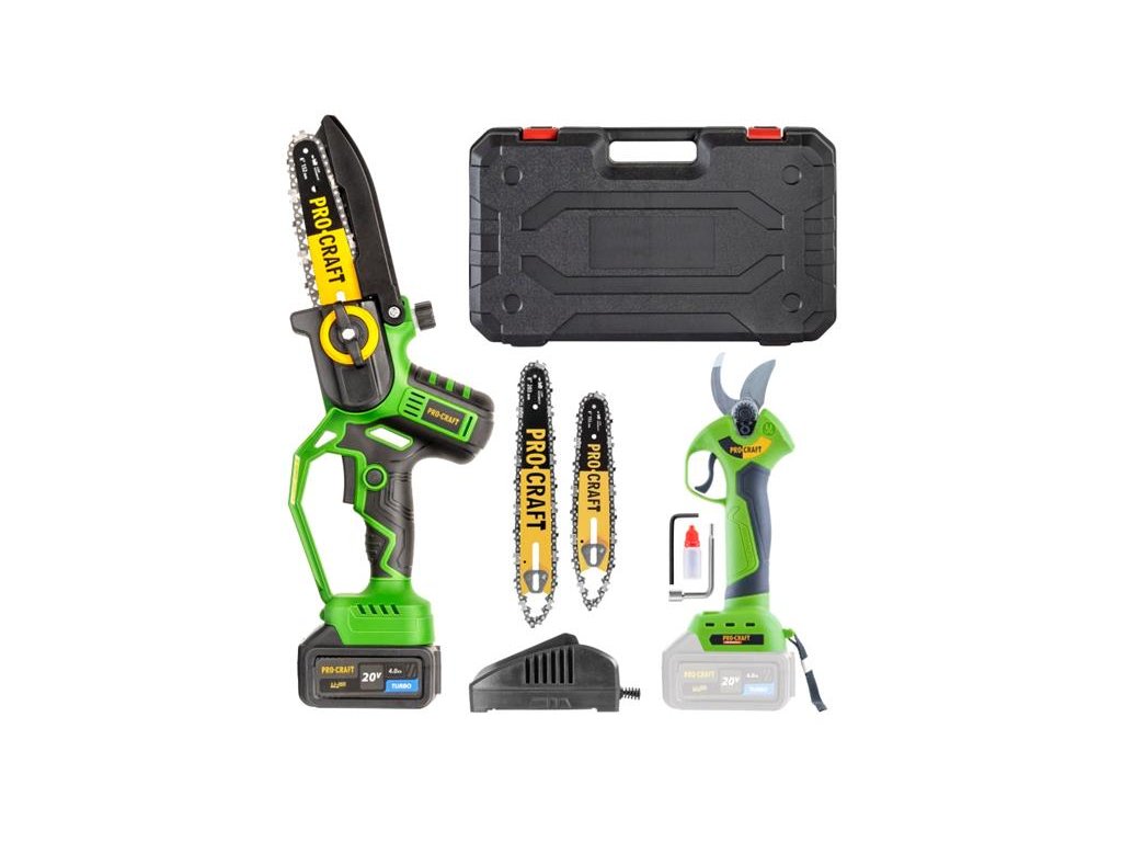 Sada aku zahradního nářadí Procraft PKA32Li + ES28Libb představuje ideální kombinaci pro každého, kdo hledá výkonný, lehký a snadno ovladatelný pomocník pro práci na zahradě. Tato sada zahrnuje jednoruční řetězovou pilku a aku nůžky na větve – obě zařízení jsou poháněna stejnou 20V Li-ion baterií, což zajišťuje maximální efektivitu a flexibilitu při práci.