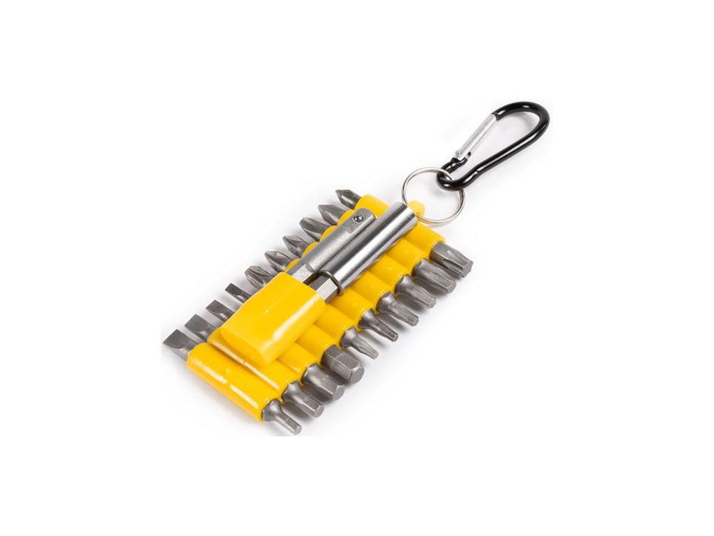 Součástí setu je také adaptér a magnetická prodlužovací tyč, která usnadňuje práci v těžko přístupných místech. Celá sada je uložena v praktickém malém balení s karabinou, které se snadno vejde do jakéhokoli kufříku nebo do kapsy. Budete ji tak mít vždy po ruce, ať už jste doma, v dílně nebo na cestách. Kvalitní materiály a promyšlený design zaručují dlouhou životnost a spolehlivost.