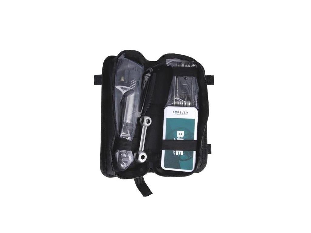 Multifunkční sada na opravu jízdních kol v praktickém pouzdře, které lze připevnit pod rám. V případě jakýchkoli problémů s provozem vozidla vám nářadí, které je součástí sady, umožní závadu odstranit.