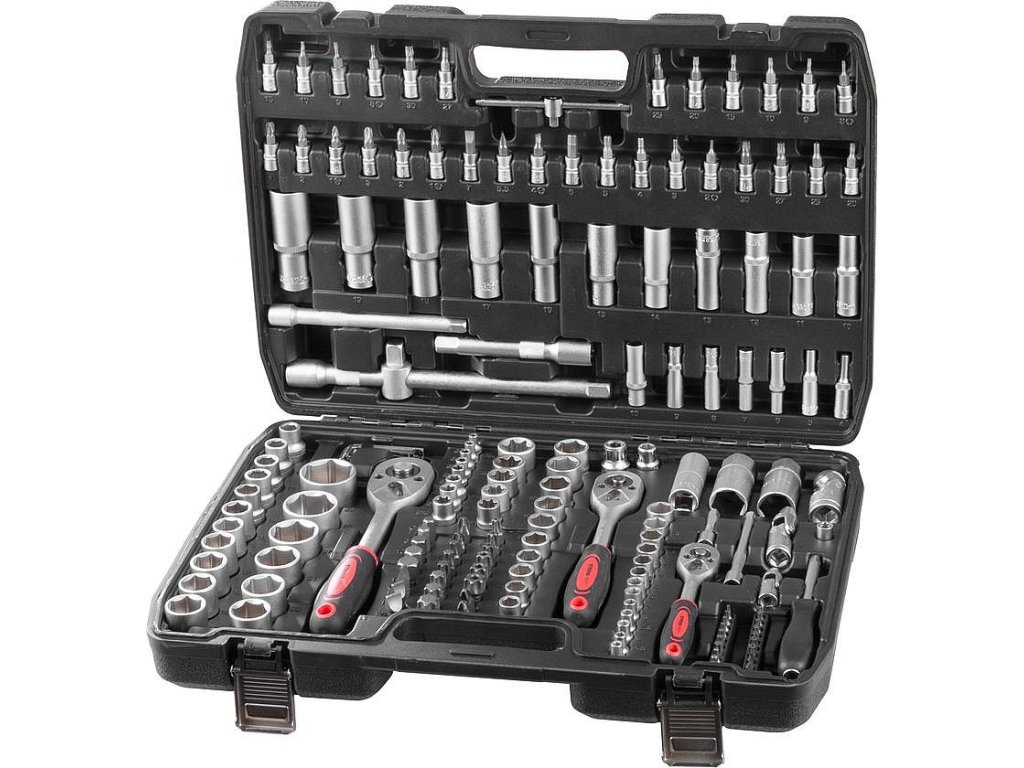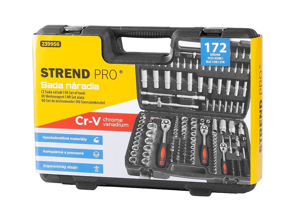 Sada nářadí Strend Pro 172-dílná, hlavice, bity, ráčna, v kufru.