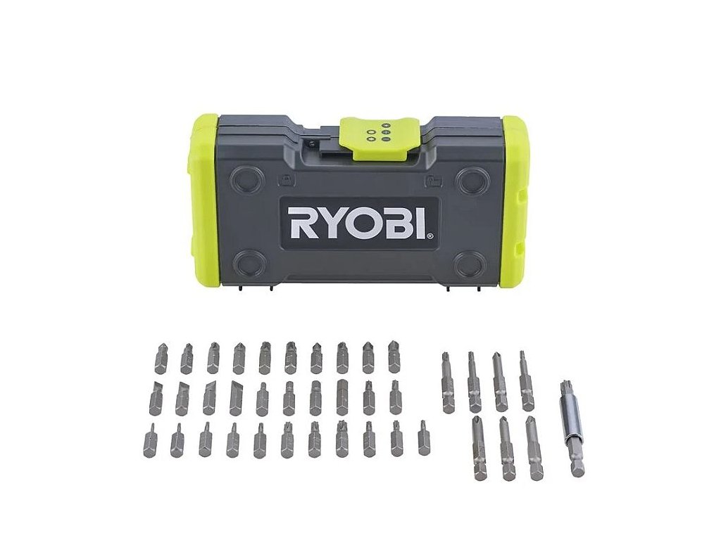 Dílenská sada šroubovacích bitů Ryobi v praktickém pouzdře.