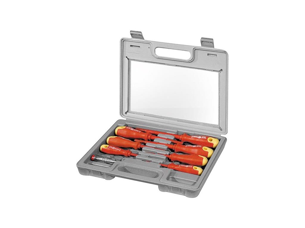 3x křížový šroubovák: PH0 x 75 mm, PH1 x 100 mm, PH2 x 100 mm, 4x drážkový šroubovák: 3 x 75 mm, 4 x 100 mm, 5,5 x 125 mm, 6,5 x 150 mm, 1x zkušební 40 mm-šroubovák 100 mm 250 V)