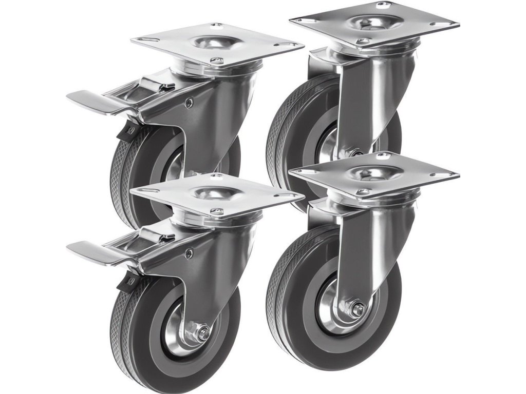 Průmyslová kola jsou prvky, které se používají v různých průmyslových odvětvích k usnadnění pohybu těžkých břemen, strojů nebo zařízení. Kolečka jsou kvalitní, mají gumový běhoun a na vrchní desce kuličkové ložisko. Kola jsou otočná o 360 stupňů, s dvojitou brzdou: brzda blokuje otáčení kol při otáčení. Montáž by neměla způsobovat žádné problémy. Našroubujete jej přímo do ocelového pozinkovaného plechu v podběhu kola.