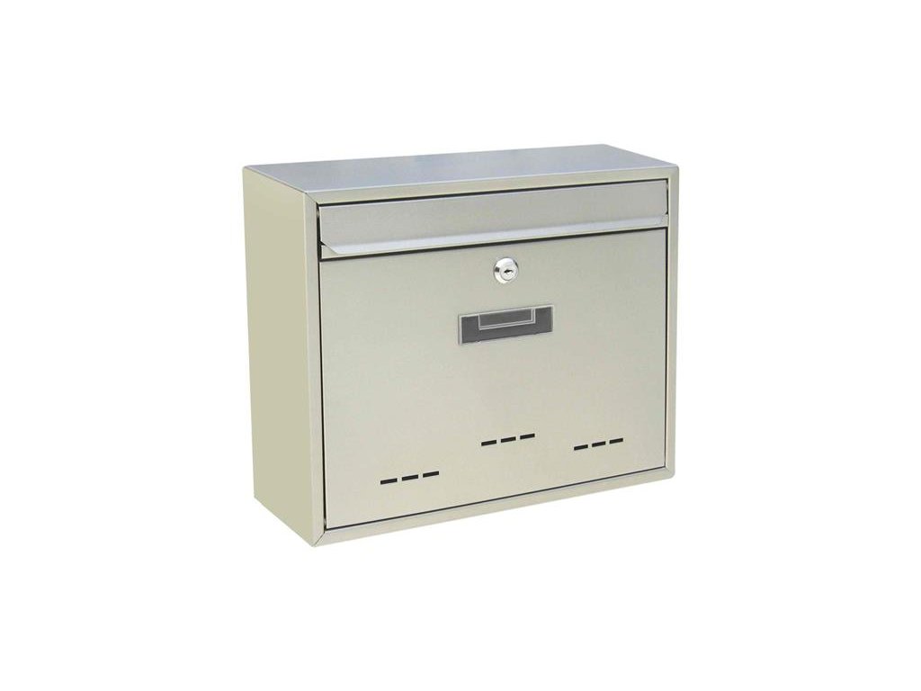 Poštovní schránka vyrobená z nerezové oceli. Vhození a výběr pošty přední stranou. Uchycení do zdi nebo na plot ve čtyřech bodech. Pro vnější i vnitřní prostředí. Jmenovka a okénko pro kontrolu přijaté pošty z přední strany.