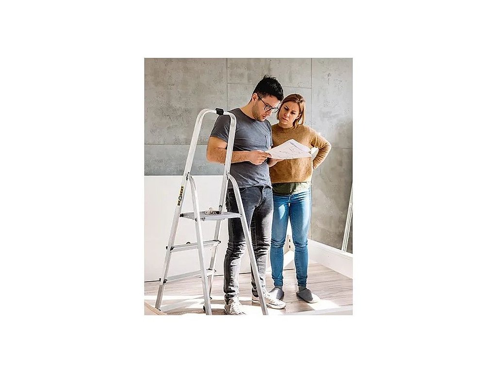 Domácí žebřík z odolného a lehkého hliníku je určen pro každodenní práci v domácnostech a občasné renovace.