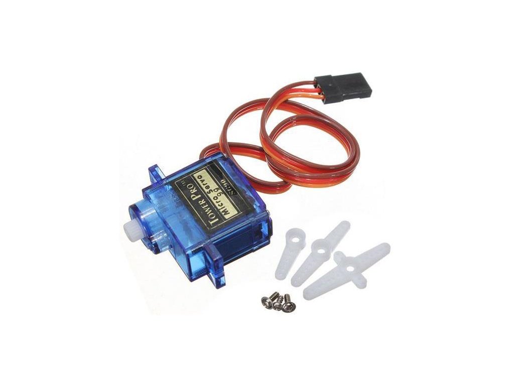 Obsah balení: Micro servo, PVC páky 3ks, upevňovací vruty 3ks, vodič s konektorem.