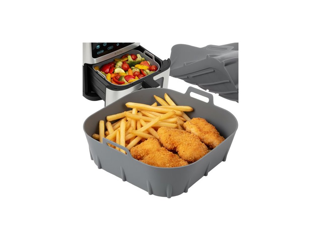 Silikonová pečicí vložka do vzduchové fritézy. Tato forma umožňuje udržovat vnitřek fritézy čistý. Zabraňuje připálení pokrmu při smažení. Forma zabraňuje ulpívání potravin na dně fritézy a omezuje množství nahromaděného tuku. Vložka je opakovaně použitelná, odolná vůči vysokým teplotám a lze ji mýt i v myčce.
