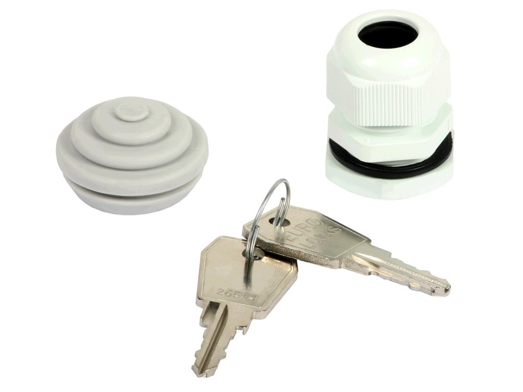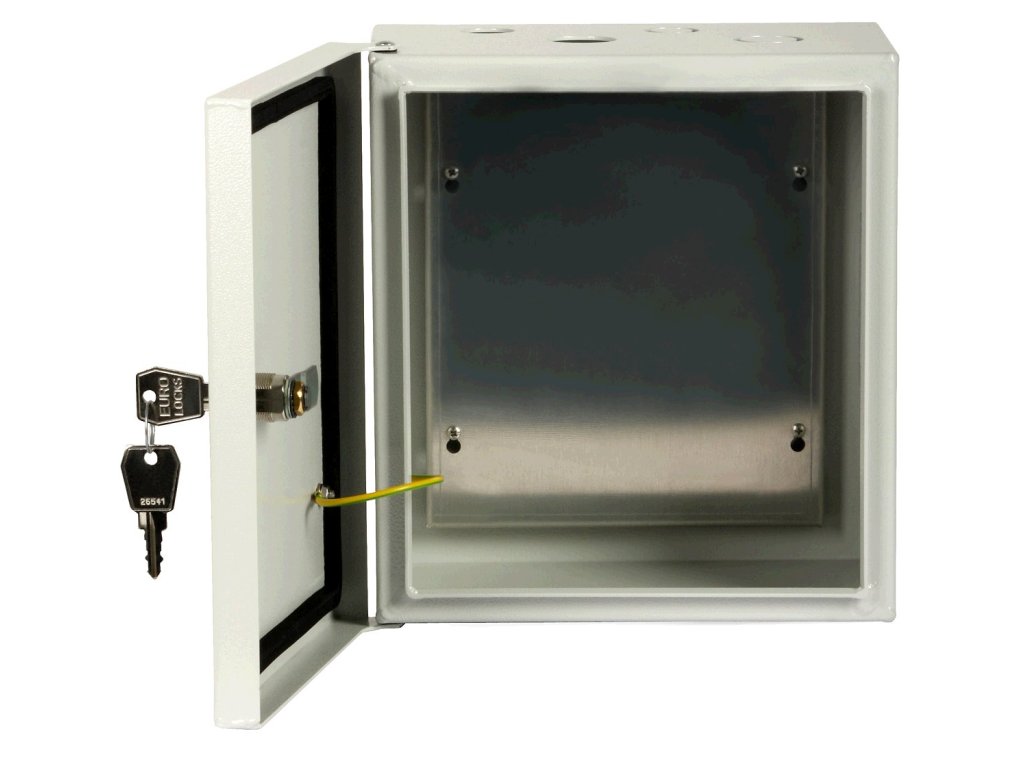 Rozvodná skříň 210/230/145 mm určená pro montáž na stožár nebo stěnu. Skříňka má 4 montážní otvory. Uvnitř skříně je montážní deska, kterou lze snadno vyjmout. Skříň je plně vzduchotěsná, ve spojení stěn nejsou žádné mezery, takže se do skříně nedostane voda. Dveře jsou chráněny gumovým těsněním. Skříňku lze uzavřít cylindrickým zámkem. Třída krytí IP67. Díky zabudovanému držáku R90610E je možné skříň namontovat na stožáru. Kromě toho má skříň čtyři kabelové průchodky (dvě zaslepené, jedna žlábek, jedna gumová zátka).