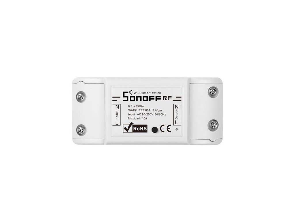 Nová verze oblíbeného spínače Sonoff RF (IM151116003)Sonoff RF je levný chytrý WiFi spínač s modulem rádiového přijímače 433,92 MHz, který lze ovládat rádiovým dálkovým ovladačem. Jedná se o dálkově ovládaný vypínač, který lze připojit k široké škále zařízení. Elektrický spínač Sonoff RF přenáší data do cloudové platformy prostřednictvím připojení WiFi, které uživatelům umožňuje dálkově ovládat všechna připojená zařízení prostřednictvím mobilní aplikace eWeLink.