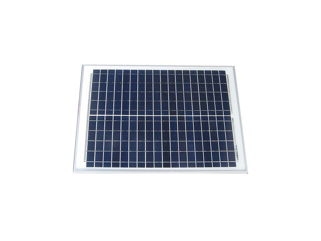 Fotovoltaický panel vyrobený z polykrystalického křemíku. Duralový rám 25mm, krycí sklo.