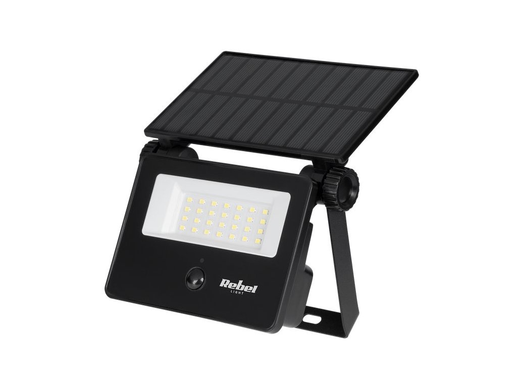 Solární reflektor REBEL URZ3625, 800lm, IP54, 6500K, 3,7 V, 1500 mAh, 6W, černá
