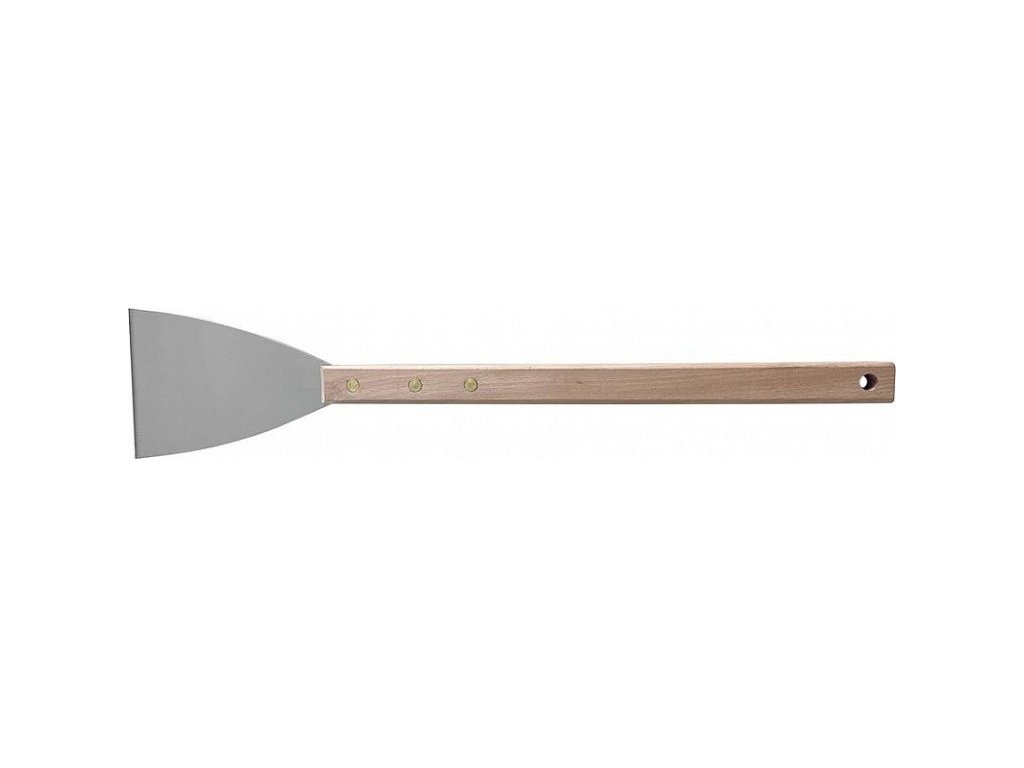 POPIS Stěrka disponuje ocelovou čepelí a dřevěnou prodlouženou rukojetí. Používá se k čištění děr, seškrabávání přebytečného materiálu a pod. Velikost čepele je 10 cm, celková délka je 35 cm.