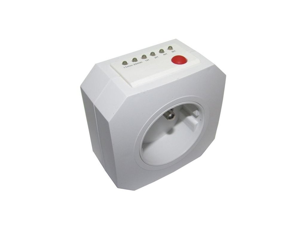 Časový spínač s nastavitelnou dobou sepnutí 15min až 15hod+45min s krokem 15min. Potřebný čas sepnutí se nastavuje opakovaným stiskem červeného tlačítka až do dosažení požadované hodnoty, což je součet včech časů svítících LED diod. Svítící LED diody indikují zbývající dobu sepnutí. Odporová zátěž 3500W, indukční 500W, rozměry 70×70×35mm.