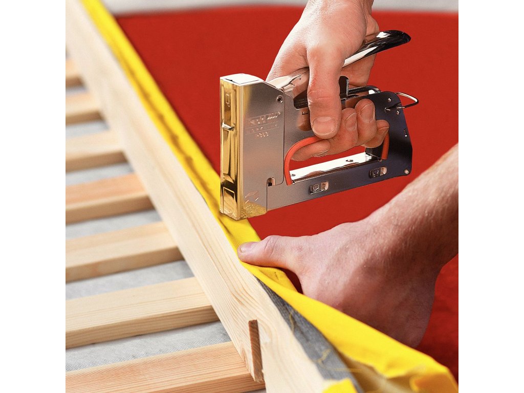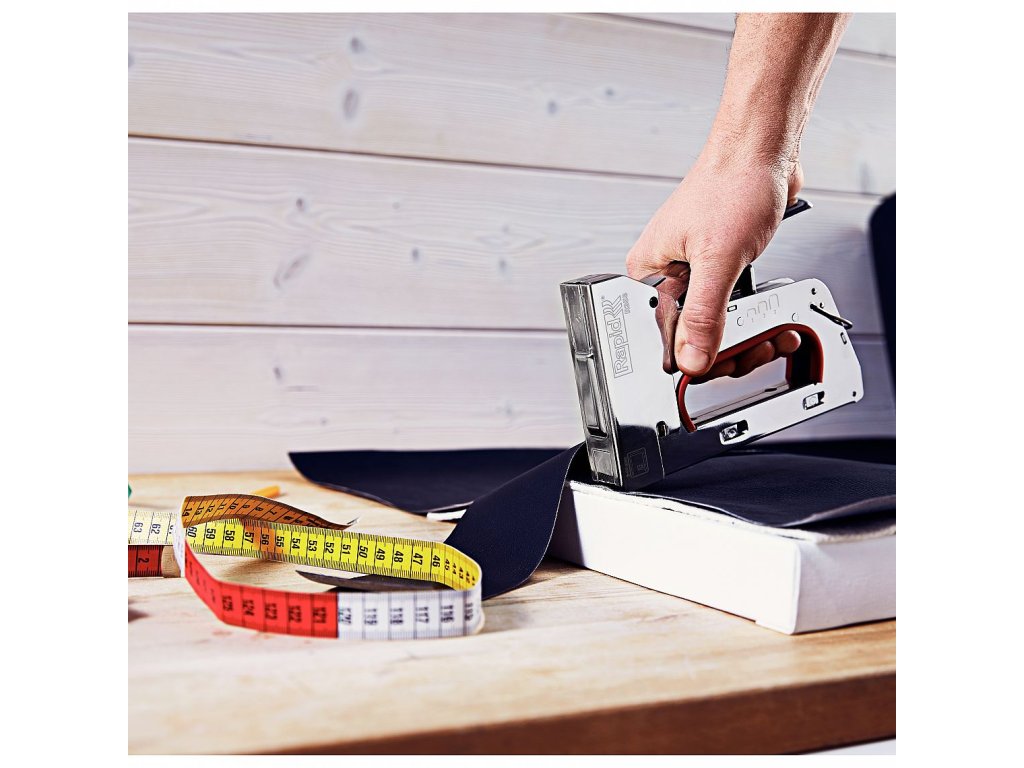 Vhodná pro množství náročných prací, včetně upevňování těžkých textilií, koberců, kůže, plátna a jiných citlivějších textilií.