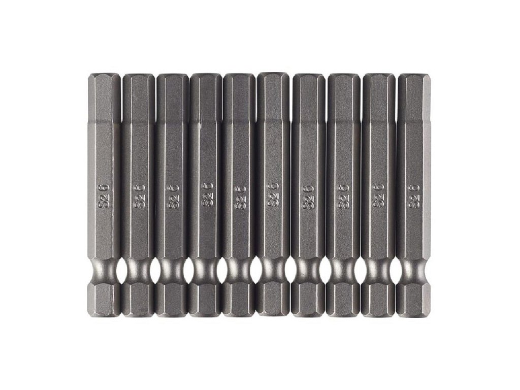 POPIS Bit vnější 6-hran HEX6, jednostranný Délka: 50 mm Stopka: 1/4" Počet ks v sadě: 10