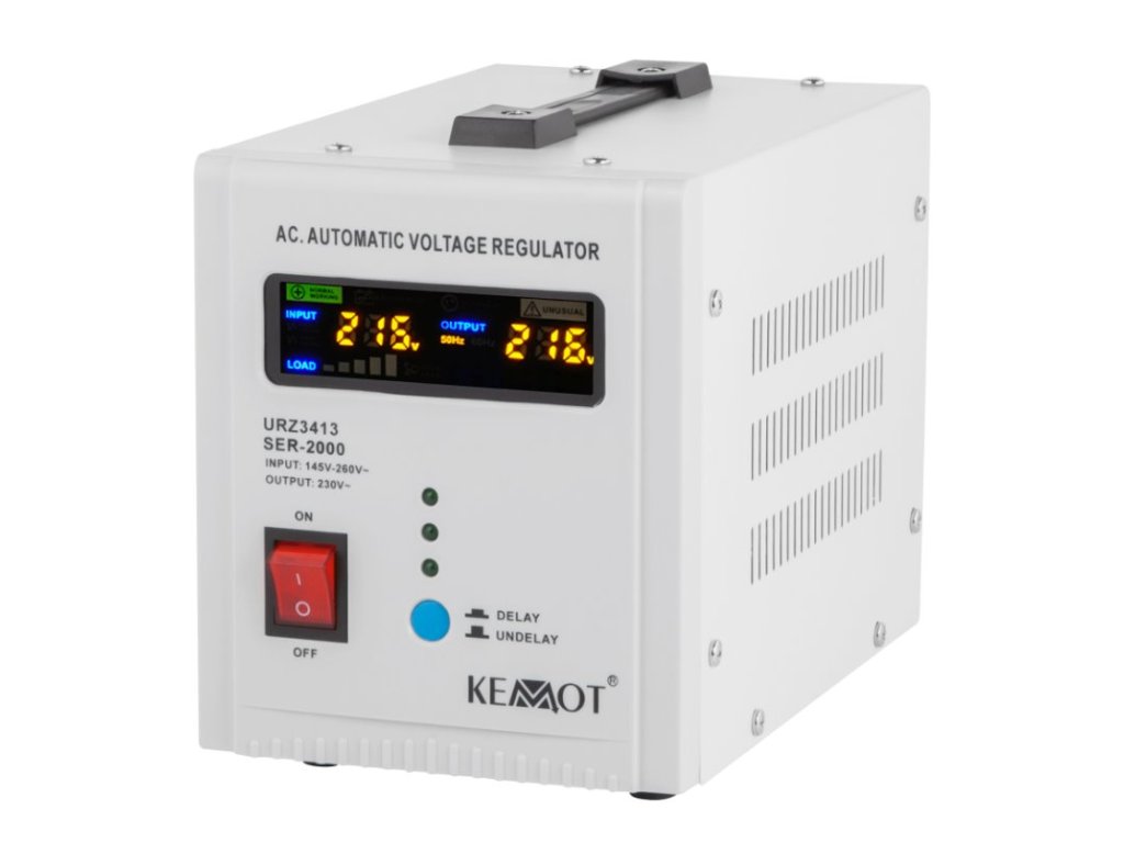Automatická regulace zajišťuje vysokou přesnost výstupního napětí. KEMOT SER-2000 je vhodný pro domácí i kancelářské použití,