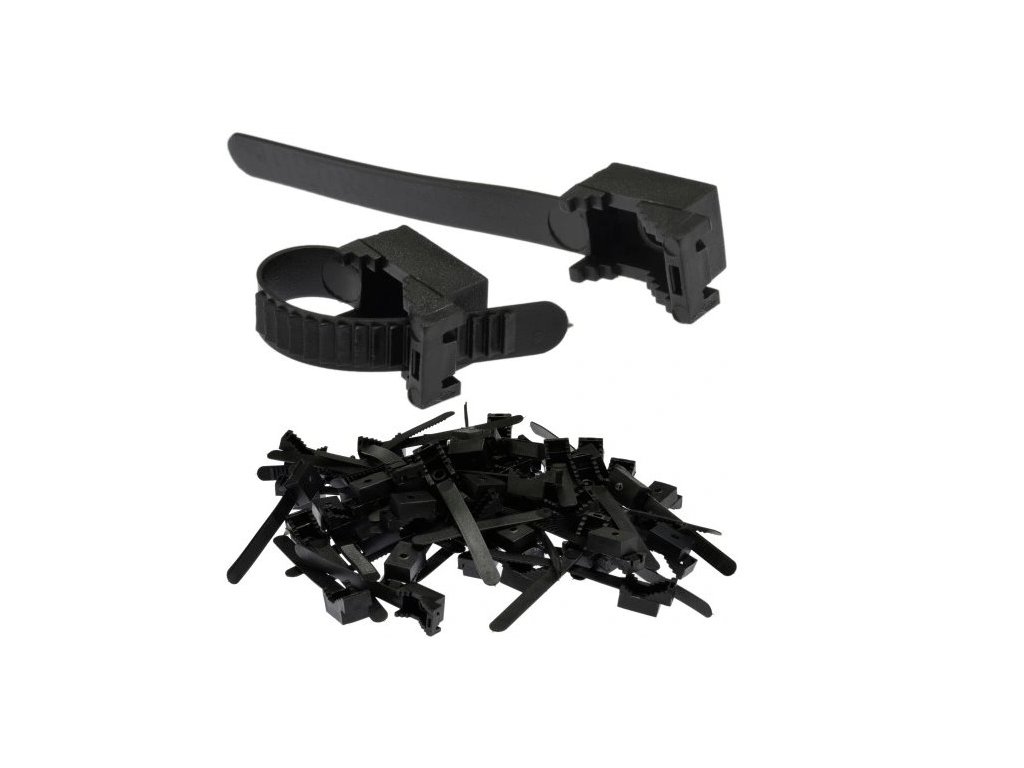 Stahovací pásky UP-30/100 UV, šířka 12mm, ČERNÉ, balení 100ksUpevňovací úchyt UP je vyroben z polypropylenu a skládá se z pásu s vroubkovaným profilem a upevňovacího sedla. Slouží k upevnění jak kabelů, tak i trubek z plastu. Upevnění se provádí připevněním upevněného předmětu na sedlo a jeho připevněním pomocí zoubkovaného pásku.