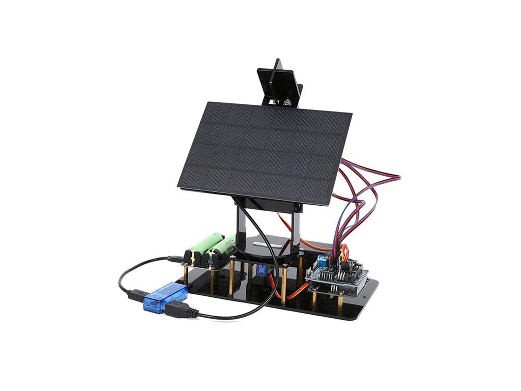 Srdcem sady je mikroprocesorová deska (kompatibilní s Arduino), která v reálném čase vyhodnocuje data ze světelných senzorů a pomocí servomotorů natáčí solární panel přímo ke slunci.