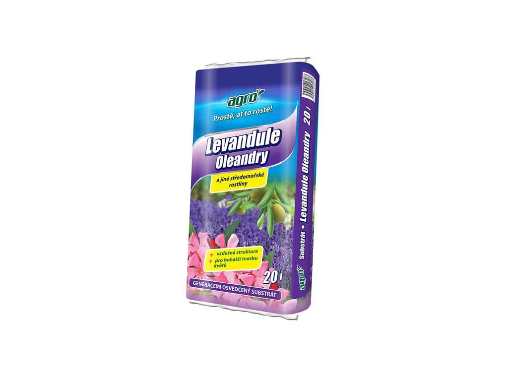 Substrát obsahuje hnojivo na prvních 6 týdnů, pro bohatší tvorbu květů a plodů. Pro levandule, oleandry, a další středomořské rostliny jako jsou olivovníky, citrusy apod.