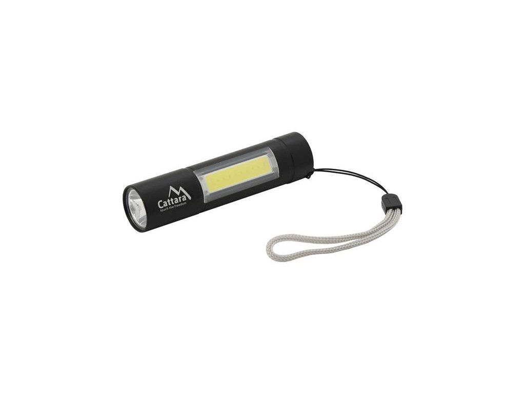 Kapesní svítilna drobných rozměrů se dvěma zdroji světla a dobíjením pomocí USB kabelu.