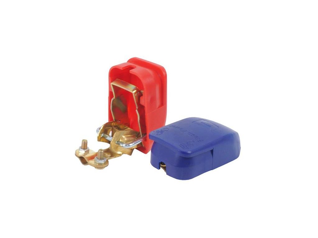 Samosvorné mosazné svorky umožňují snadné odpojení baterie bez použití nářadí. Nahrazují vypínač. Chrání před úrazem elektrickým proudem nebo zkratem. Vhodné pro baterie vyhovující normám SAE a DIN s kolíky EURO-Type-1 - 19,5 mm (+) a 17,9 mm (-). Možnost připojení dalšího kabelu.