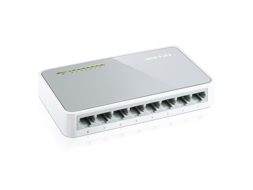 Switch TP-LINK TL-SF1008DMalý desktop switch TP-LINK TL-SF1008D v plastovém provedení s 8x 10/100 Base-TX Fast Ethernet porty. Všechny porty podporují funkci Auto MDI/MDIX, Switch je vhodný pro malé SoHo sítě s rychlostí 100 Mbps. Switch je napájen pomocí extreního adaptéru. Podporuje IEEE802.3x kontrolu toku pro Full Duplex a backpressure pro half-duplex mode a automatické učení MAC adres. Switch je zajímavý svou příznivou cenou.