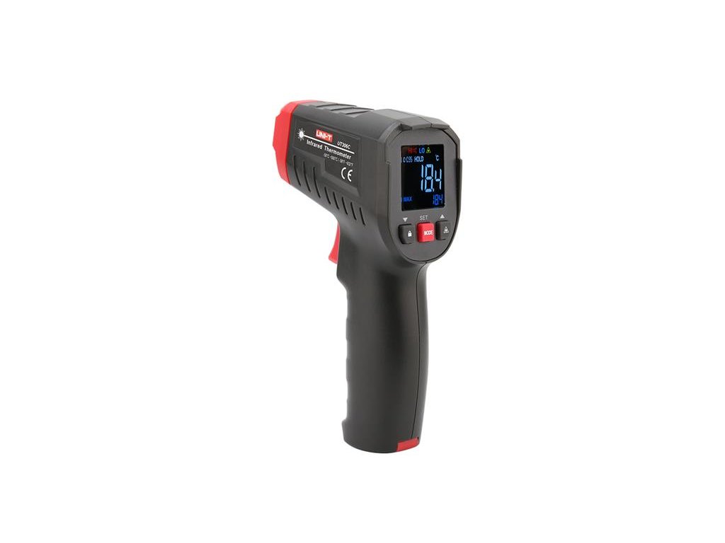 Na tento výrobek poskytujeme 3 roky záruku. Profesionální bezkontaktní infračervený teploměr UT306C dokáže rychle a přesně určit povrchovou teplotu v rozmezí -50°C až +500°C změřením infračervené energie vyzařované z cílového povrchu. Pro snazší a intuitivní zaměření přístroje na cílový povrch je zabudován prstencový laser, který indikuje správné zaměření teploměru. Poměr vzdálenosti k průměru měřeného povrchu je u tohoto přístroje 12 :1. Tento teploměr je odolný proti pádu z výšky 1 metru. Je možné přednastavit emisivitu měřeného povrchu v rozmezí 0,1 až 1,0. Indikaci přednastavených funkcí a naměřených hodnot zajišťuje jasný a vysoce kontrastní EBTN barevný displej a hraniční hodnoty jsou indikovány bzučákem a na displeji. Je možná indikace minimálních, maximálních a průměrných teplot a odchylek od průměru ( MIN, MAX, AVG, DIF ). Teploměr se automaticky vypíná, kvůli snížení spotřeby, pokud je bez použití po dobu 15 s v režimu HOLD a po 10 s v ostatních režimech. Doba změření teploty je v 95% případů do 250msec. Napájení přístroje dvěma zinko-manganovými nebo nebo alkalickými bateriemi AAA 1,5V.