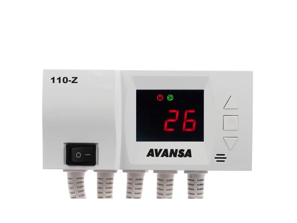 Termostat AVANSA 110Z příložnýTermostat Avansa 110-Z je určen pro ovládání čerpadla pro vytápění a čerpadla pro zásobník TUV. Čerpadlo pro vytápění se zapne, když teplota kotle překročí uživatelům nastavenou teplotu zapnutí kotle pro vytápění. Čerpadlo zásobníku TUV pracuje na základě rozdílu teplot. Zapnutí čerpadla zásobníku nastane ve chvíli, kdy teplota kotle překročí teplotu zásobníku o nastavenou hysterezi. Čerpadlo pracuje do chvíle, dokud se teplota kotle a zásobníku nevyrovnají nebo dokud nebude dosažena nastavená hodnota teploty zásobníku.
