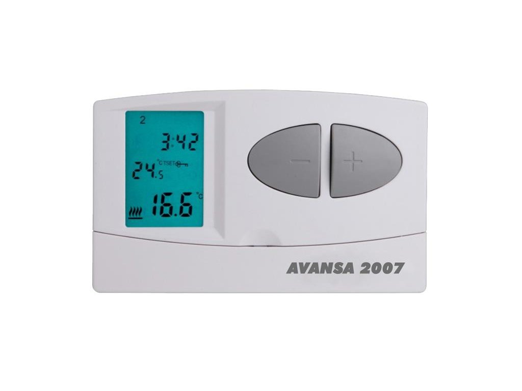 Pokojový termostat Avansa 2007 je vhodný k regulaci většiny kotlů. Termostat lze jednoduše připojit ke kotli, nebo ke klimatizačnímu zařízení s provozním napětím od 24 - 230 V. Pokojový termostat je nastavitelný pro systém s vytápěním nebo chlazením podle individuální potřeby tak, že přístroj ohřívá nebo ochladí místnost na požadovanou teplotu. Používá se na regulaci teploty v místnosti. Při vysokém stupni komfortnosti zabezpečuje i snížení energických nákladů. Dá se zapnout 6krát denně, a při každém zapnutí nastavit na jinou teplotu (po 0,5 ° C).