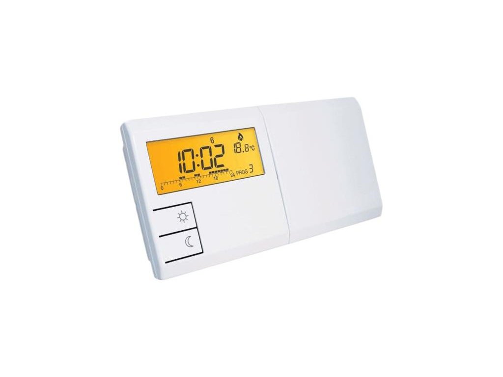 Pokojový týdenní termostat lze zapojit na téměř všechny plynové, elektrické kotle nebo kotle na tuhá paliva (dřevo, pelety nebo uhlí), které podporují dvoubodové spínání. Na termostatu je možné nastavení týdenního programu, t.z. pro každý den jiný program nebo časování. Termostat umožňuje nastavení dvou teplot, tzv. denní teplotu, kterou použijeme na vytápění přes den a útlumovou teplotu, kterou použijeme například přes noc. Má i pokročilé funkce, jako například nastavení rozdílu spínání kotle, kde se určí přesný rozdíl mezi zapnutím a vypnutím kotle. Tímto docílíme méně častému spínání kotle. Nebo možnost nastavení manuálního režimu, kde je možné regulátor ihned nastavit na možnost vytápění, kdy je nastaven v útlumovém režimu.