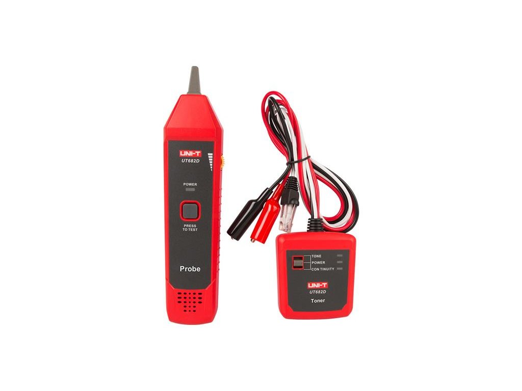 Tester kabelu UNI-T UT682DNa tento výrobek poskytujeme 3 roky záruku. UT682D- tester kabelů nabízí jednoduchý způsob, jak rychle najít a identifikovat kabely, dráty a svazky kabelů. Připojte přístroj ke kabelu a poté sledujte kabel a signál s pomocí sondy. Přístroj také může být použito k testování spojitosti vedení a polarity na telefonních linkách.