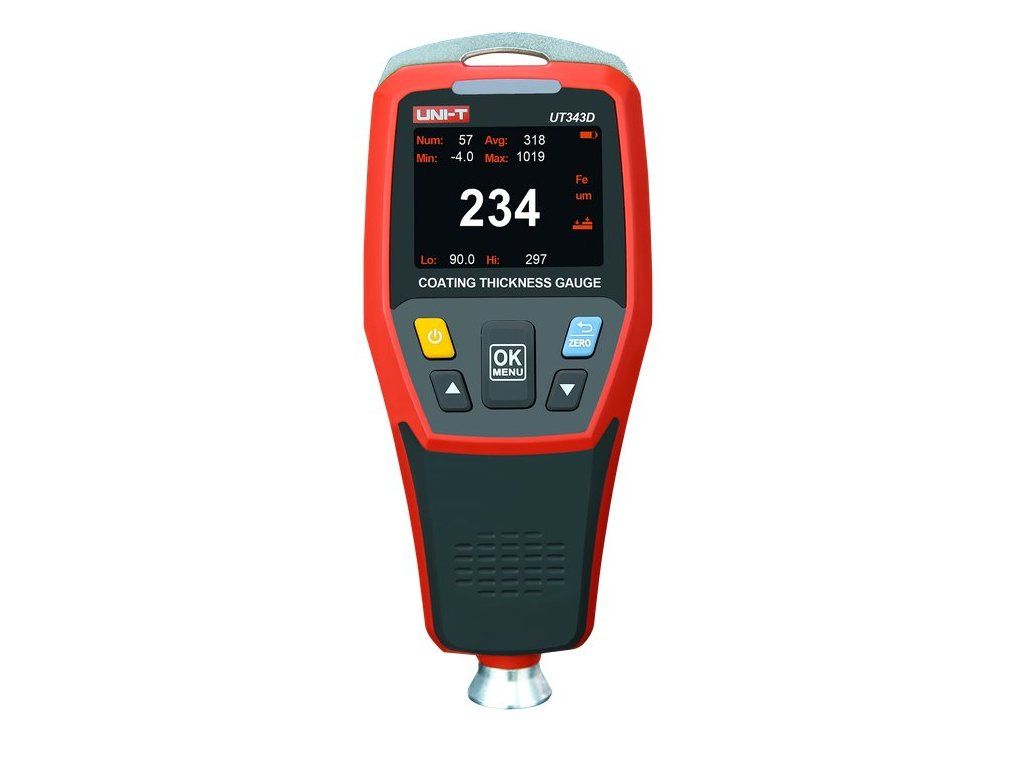 UT343D je vysoce přesný měřič tloušťky laku, který dokáže měřit tloušťku laku na železných i neželezných kovech. Toto zařízení se vyznačuje vysokou přesností, nedestruktivním měřením a funkcí jednobodového i vícebodového průměrovacího algoritmu a rychlého měření. Je široce používán při výrobě a zpracování kovů, letectví, námořní mechanice, železniční dopravě, vědeckém výzkumu, kontrole kvality a dalších průmyslových odvětvích.