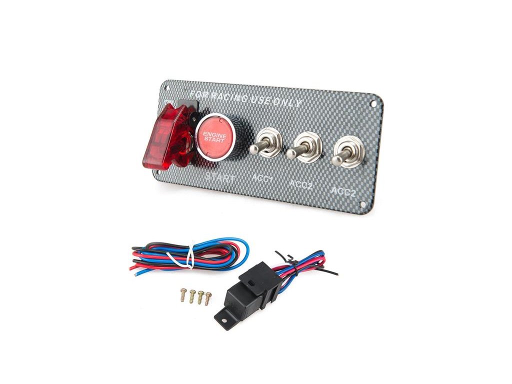 Univerzální panel s 4x spínači + tlačítko START v karbonovém stylu.