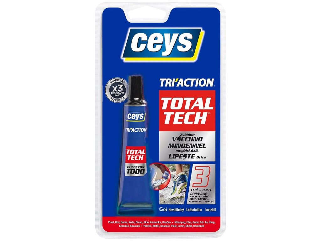 Ceys Tri’Action s technologií Total Tech je výrobek 3v1: Lepí, tmelí a opravuje jakýkoli materiál v jakékoli situaci, odolá i těm nejnáročnějším podmínkám.